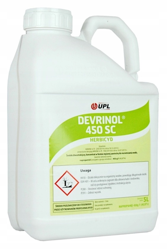 DEVRINOL 450 SC to środek chwastobójczy, koncentrat w formie stężonej zawiesiny do rozcieńczania wodą, stosowany doglebowo, przeznaczony do zwalczania chwastów jednoliściennych i niektórych dwuliściennych w uprawie rzepaku ozimego, pomidora, kapusty głowiastej, truskawki, agrestu, maliny, porzeczki czarnej, porzeczki czerwonej i porzeczki białej. Środek przeznaczony do stosowania przy użyciu opryskiwaczy polowych lub sadowniczych wyposażonych w belkę herbicydową.