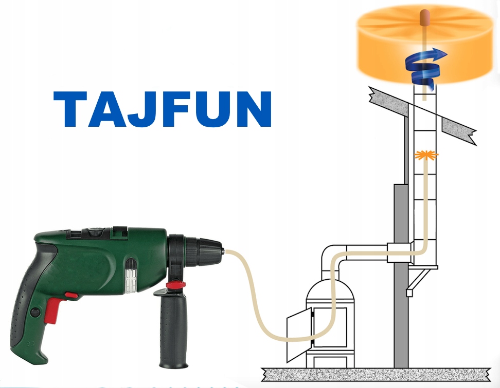 Czyszczenie komina za pomocą ręcznej szczotki - to zazwyczaj trudna i uciążliwa praca, która wymaga czasu, cierpliwości i wiedzy. Dlatego też zajmowali się tym do tej pory tylko profesjonalni kominiarze. Jednak od dzisiaj wyczyścić komin możesz sam. Nie będziesz potrzebował do tego ani szczególnych nawyków, ani mnóstwa środków czyszczących. Stosując obrotowy zestaw do czyszczenia kominów TAJFUN, wyczyścisz komin szybko i z przyjemnością. Oprócz tego, zaoszczędzisz pieniądze, które musiałbyś zapłacić specjalistom od czyszczenia kominów, a co najważniejsze, będziesz zawsze spokojny co do stanu twojego komina.